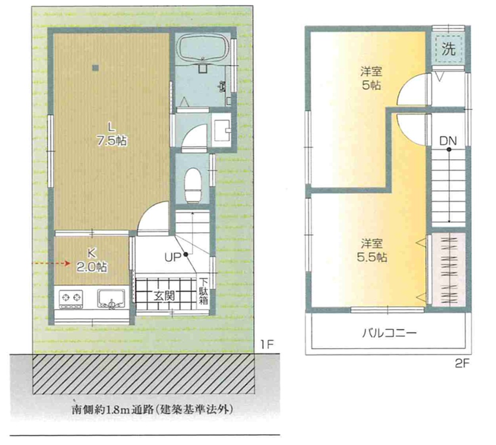 | 接道状況 | 南側約1.8m通路(建築基準法外) | 私道負担面 | |